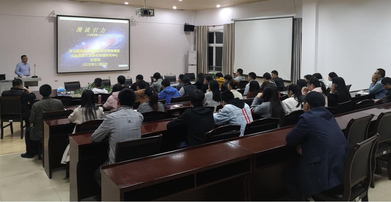 本网讯(通讯员 李燕玲 刘相泉)为拓展我院研究生科研视野,促进学科交叉创新,11月3日晚,在生物资源保护与利用湖北省重点实验室二楼会议室,特邀请永利官网理论物理研究中心的刘显明博士为我院全体研究生做了题为“漫谈引力——从2020诺贝尔物理学奖谈起”的学术讲座。讲座由我院邓志军老师主持。