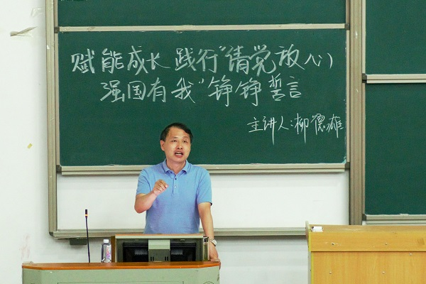 柳德雄以“赋能成长,践行请党放心,强国有我青春誓言”为题。从三个方面展开,一是了解我院发展历史,这里是青年学子成长的沃土;二是学习领悟习近平总书记关于青年的重要论述,对标青年成长路径;三是赋能成长,践行“请党放心,强国有我”青春誓言。首先结合学院发展历史全面介绍了我院在师资队伍建设、学科专业建设以及在人才培养等方面所取得的重大成就,勉励同学们了解专业、认知专业、从而爱上自己所学的专业,在未来的学习中因喜爱而专注,因渴求而勤奋。