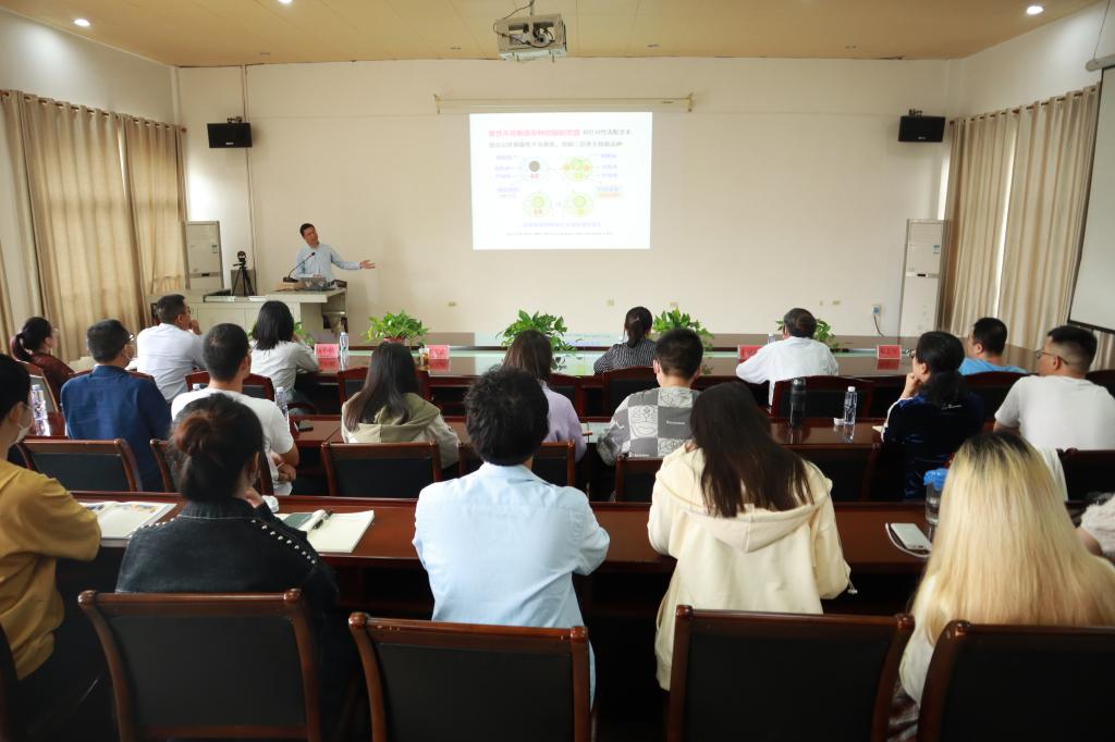 本网讯(通讯员 张百川 何晓波 叶薇/文 陈浩文 苏比努尔 /图)4月24日上午,应我院牟蛟琳老师邀请,华中农业大学果树学教授、博士生导师郭文武在我院重点实验室二楼会议室开展以“柑橘细胞工程育种技术创新与无核新品种培育”为题的学术讲座。华中农业大学副教授伍小萌、解凯东,永利官网老专家余展琛教授、学院党总支书记邓顺松、副院长姚兰、省重点实验室主任周大寨、副教授邓志军以及生物科学与技术学院和我院部分师生代表共同参加此次讲座。