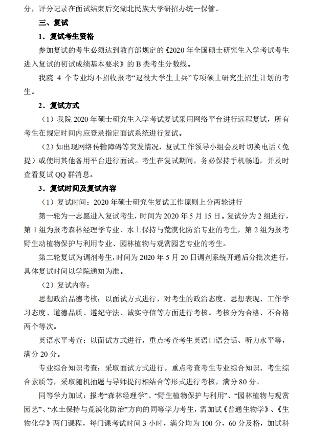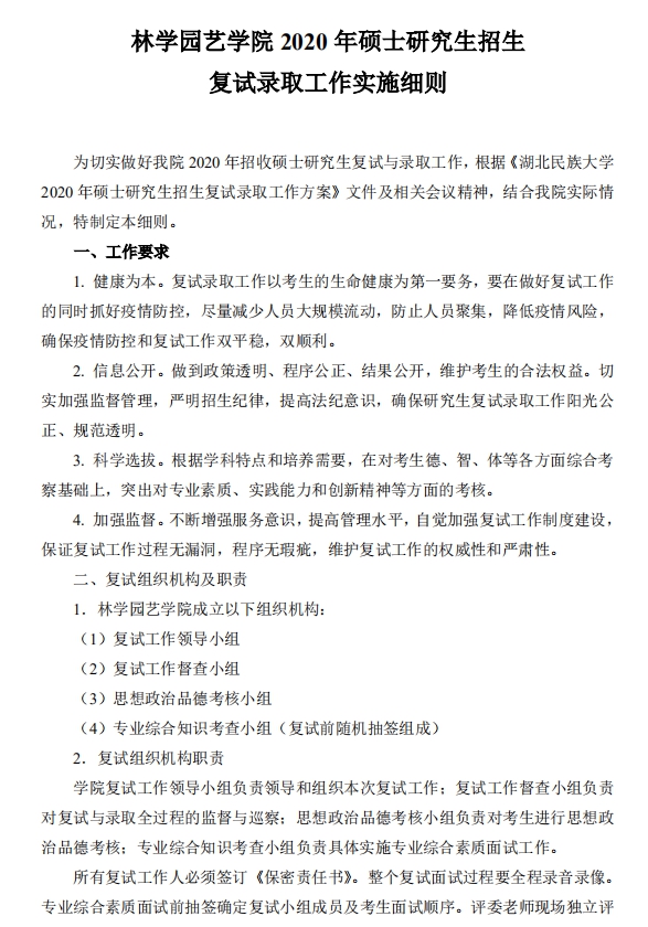 林学园艺学院 2020 年硕士研究生招生复试录取工作实施细则