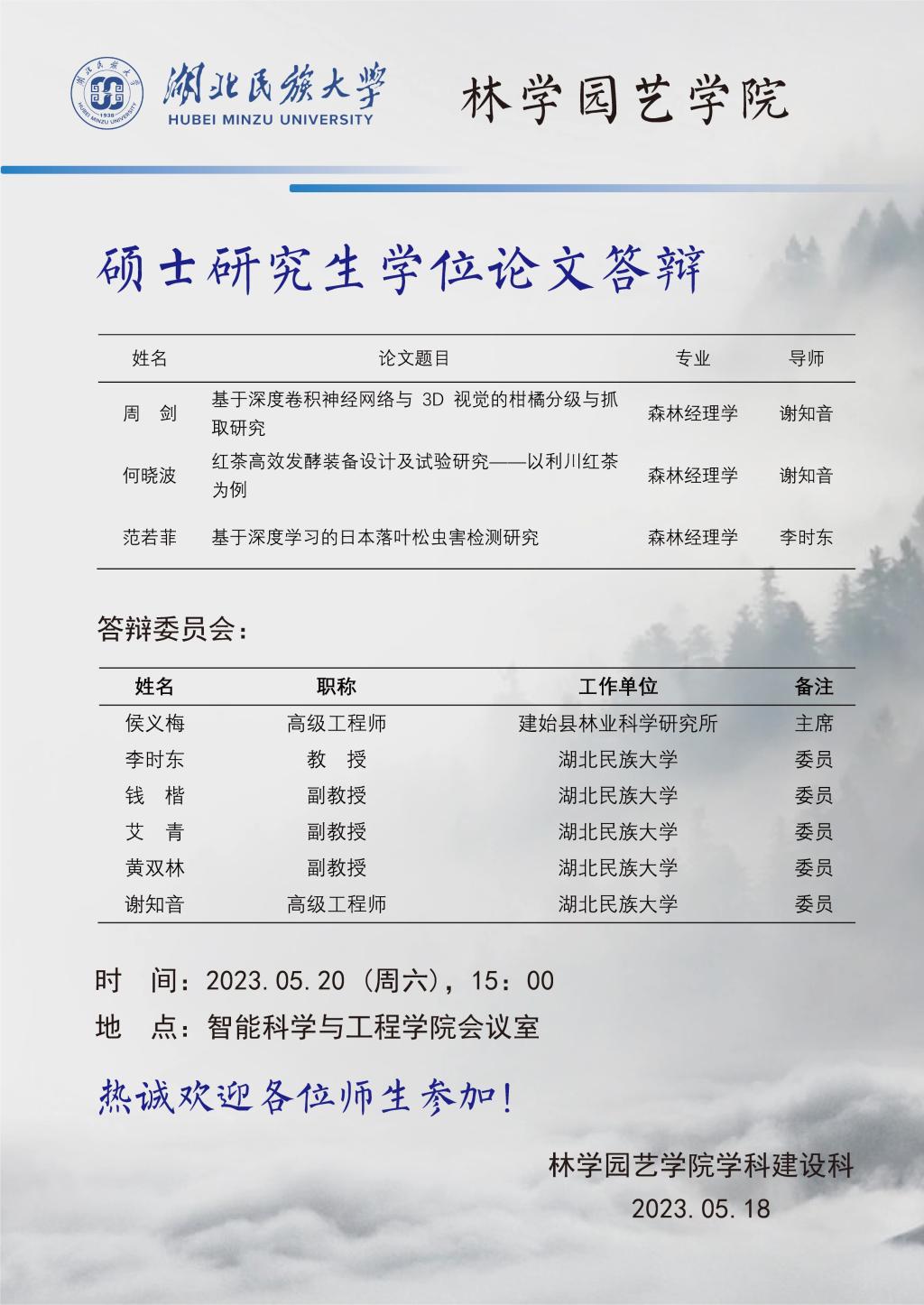 林学学科2023年硕士学位论文答辩公告(五)