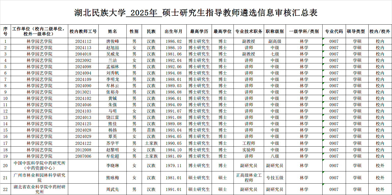 林学园艺学院2025年硕士研究生指导教师遴选名单公示