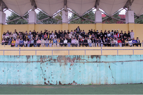 本网讯(见习通讯员 张宇航 陈迪君 安佳/文 通讯员 罗佳琪 见习通讯员 郑爽/图 )12月12日上午,我院团总支组织纪检部联合素质拓展部在五环体育场举办以“一个团队,一个梦想”为主题的第九期学生干部户外素质拓展活动。素拓拓展部部长向剑锋和组织纪检部部长罗佳琪担任主持。我院2020级全体学生干部参加。