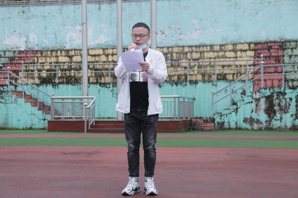 活动伊始,国旗护卫队踏正步进场,举行升旗仪式,全体师生齐唱国歌。团旗入场,师生佩戴团徽合唱团歌。共青团学生代表罗怡带领学生重温入团誓词。