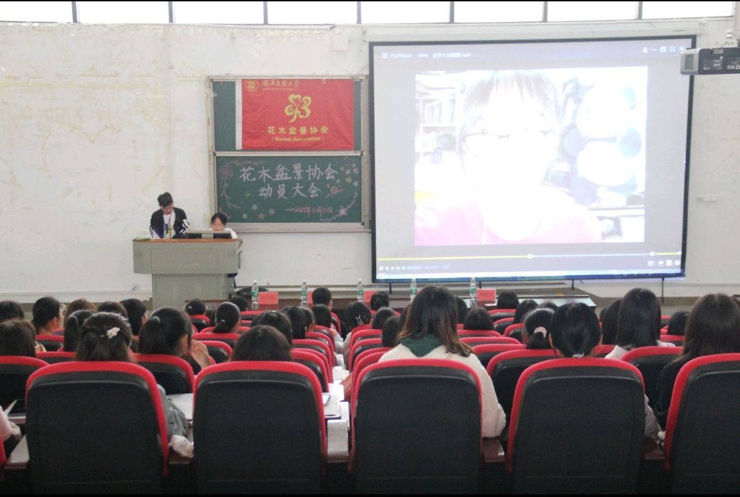 本网讯(通讯员 陈迪君 王俊杰/文 谭鑫鑫/图)10月10日上午,我院花木盆景协会在修远楼5B403教室举办动员大会。第十一届会长陈龙,第十二届会长农雅婷、副会长钟明月,各兄弟社团代表受邀出席。第十三届会长韩尚行担任主持人,全体会员到会。