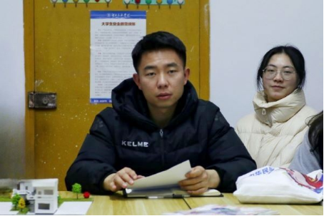 学生干部文欣进行校长座谈会精神传达。她转述座谈会部分内容:如学生在学习、生活方面的诉求;怎样过好大学生活;顿祖义提出始终要把学习放在第一位,在大学中不断提升自己等建议。