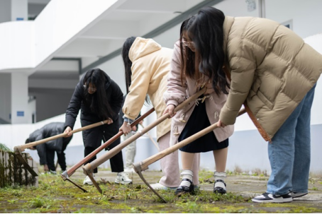 活动之初,团总支书记刘蒙恩在动员大会中强调:“本次学雷锋纪念日活动的目的在于培养广大学生干部的吃苦耐劳的优秀品质,奋勇当先的先锋精神。”团总支与学生会成员负责101办公室和小器材室物品整理,公管会、通讯社和心健委的成员负责三个自习室的清扫,花木盆景协会成员弯着腰,挥着锄头,除去花坛前杂草。劳动进行得有条不紊,各学生组织成员将一楼厕所前空地上的腐叶清铲装袋。