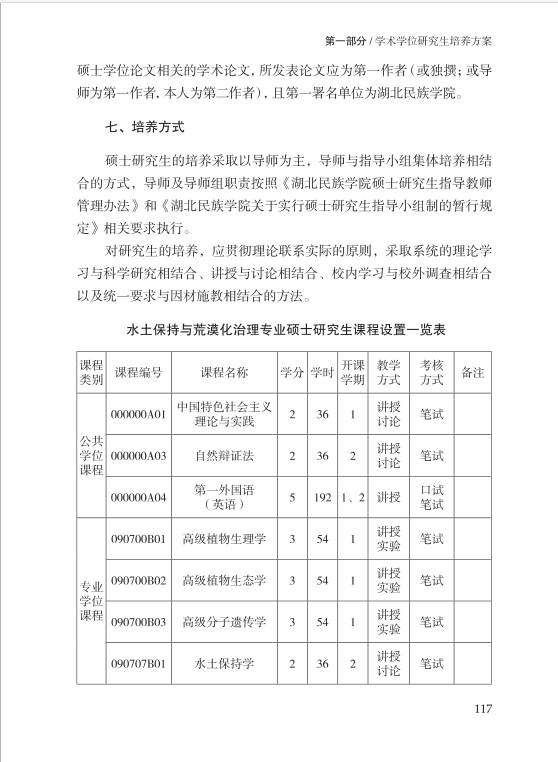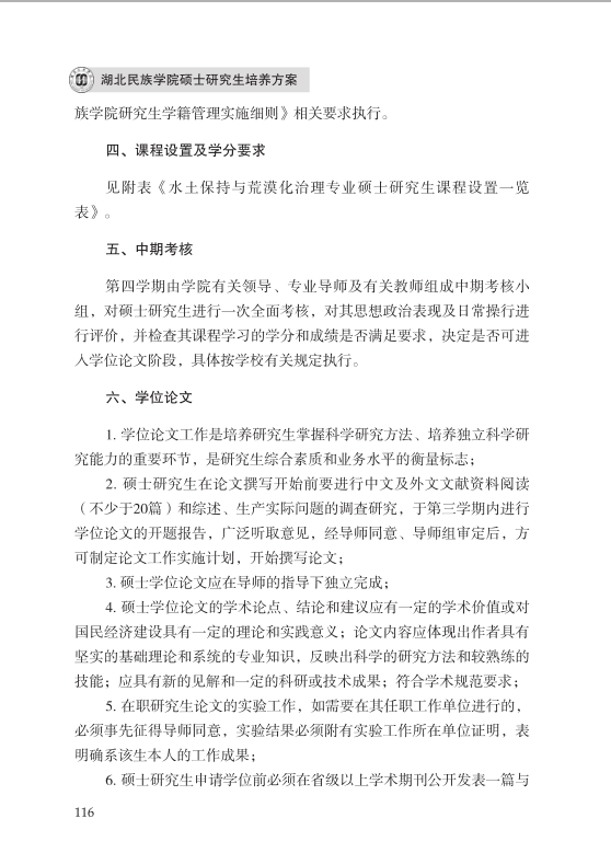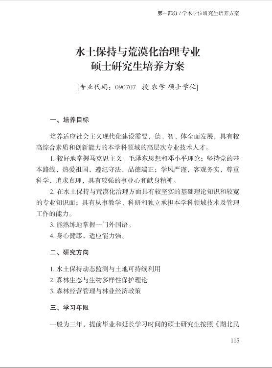 水土保持与荒漠化治理专业硕士研究生培养方案
