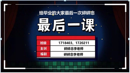 在5B217教室,即将毕业离开学校的1718403班和1720211班同学围着班主任李青老师,聆听老师最后一次“碎碎念”。李老师精心为同学们准备了最后一课,分享了自己的心路历程,从工作、感情、生活三个方面给予了同学们关于未来的人生建议和期许。最后,李老师把四年前大家写下的大学四年规划又交还给了大家,并布置了大学最后一次作业:给未来的自己、十年后的自己写一封信,李老师会为他们保存直到十年以后大家再次回到学校,希望大家都能好好的奔赴未来。临近下课,同学们为老师送上“世上只有妈妈好”的锦旗,亲切地把年轻的李青老师称为“青妈妈”。四年的光阴无数个日日夜夜的陪伴,班主任老师既是学生们专业学习上的引路人,也是学生们心中的“亲妈妈”。作为老师,没有什么比这更崇高的荣誉,没有什么比这更暖心的称呼。