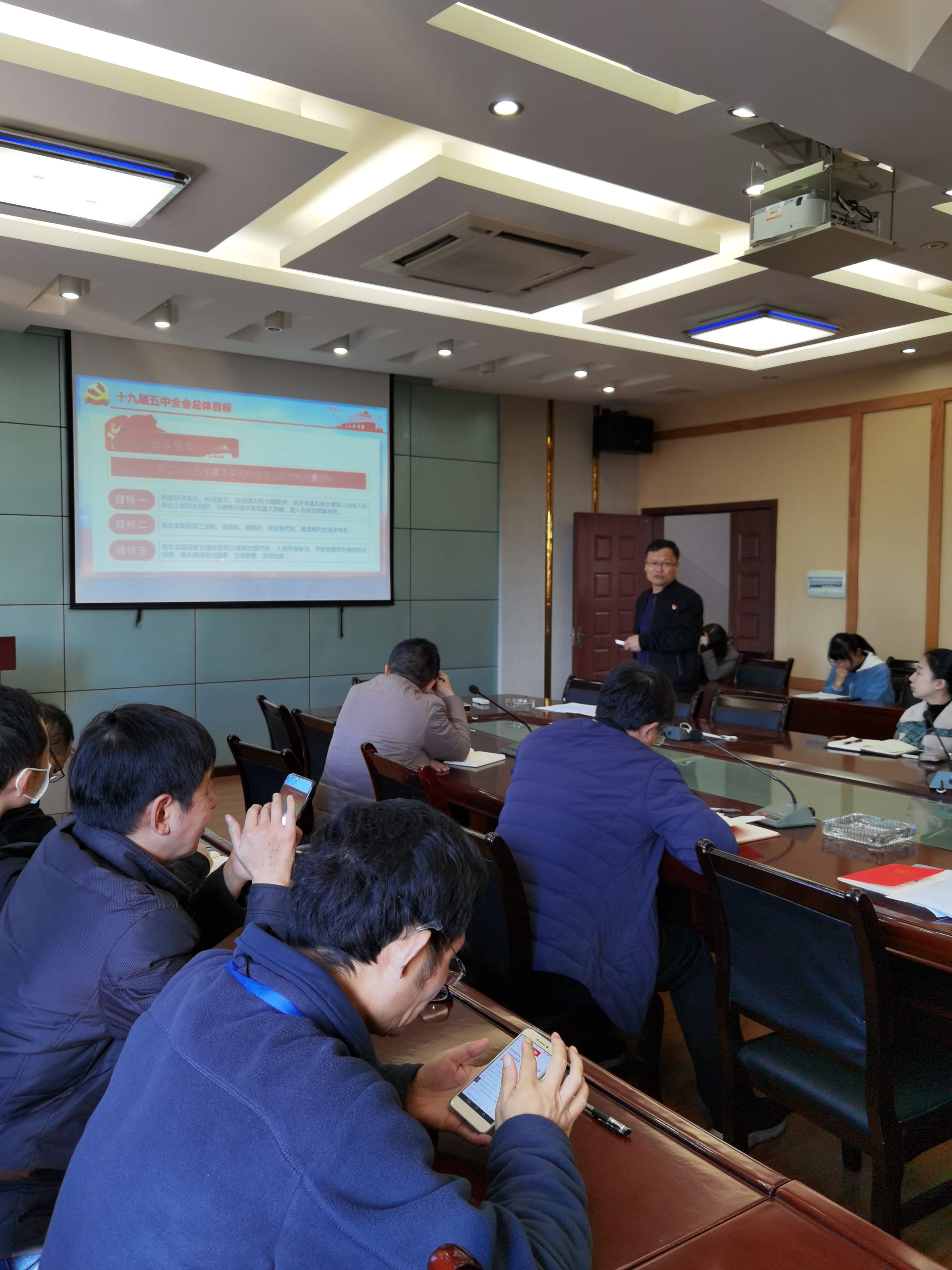 连日来,数学与统计学院按照学校党委关于学习宣传党的十九届五中全会精神的统一部署,在师生中迅速掀起了学习宣传贯彻党的十九届五中全会精神的热潮。党总支中心组利用集中理论学习时间,迅速传达学习十九届五中全会精神,研究部署学院贯彻落实工作;研究生支部通过“党的十九届五中全会精神图片展”、“学生参与答题”的方式往深里学,联系实际学;党总支书记通过教职工大会为全院教职工以党课的方式解读《中国共产党第十九届中央委员会第五次全体会议公报》;教师支部、本科生支部利用“主题党日”开展集中传达学习。师生纷纷表示自觉把思想和行动统一到党中央决策部署上来,紧跟党中央的脚步,积极贯彻党的精神,不断增强“四个意识”、坚定“四个自信”、做到“两个维护”,“不忘立德树人初心,牢记为党育人、为国育才使命”,砥砺奋进,紧盯“双一流”建设、第五轮学科评估、人才培养质量等重要目标任务,确保“十三五”圆满收官,为“十四五”开好局起好步,书写数学与统计学院发展新篇。