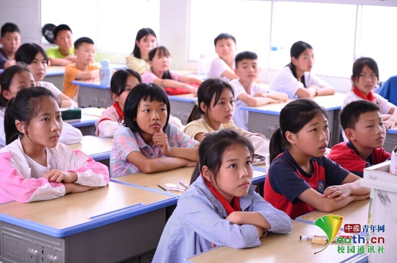 图为学生们在认真听团队成员宣讲绿色环保知识。中国青年网通讯员 赵运 供图