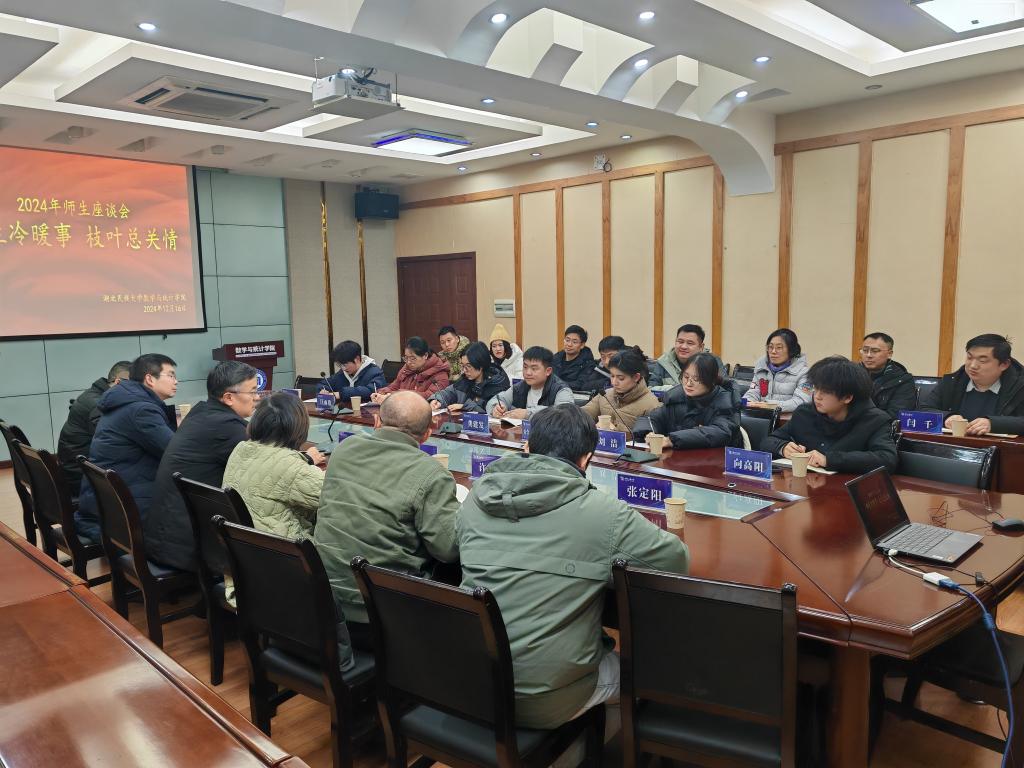 本网讯(记者 孙雯/文 孙雯/摄)12月16日晚,学校党委常委、副校长刘志军在数学与统计学院召开以“师生冷暖事,枝叶总关情”为主题的座谈会,校研究生处副处长胡盛,医学部党总支副书记许宗友,医学部学生第三党支部书记张定阳,数学与统计学院教师党支部书记王清龙,两个学院师生代表参加会议, 数学与统计学院党总支副书记郑敏主持会议。