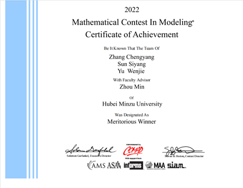我院学子在2022年美国大学生数学建模竞赛再获佳绩