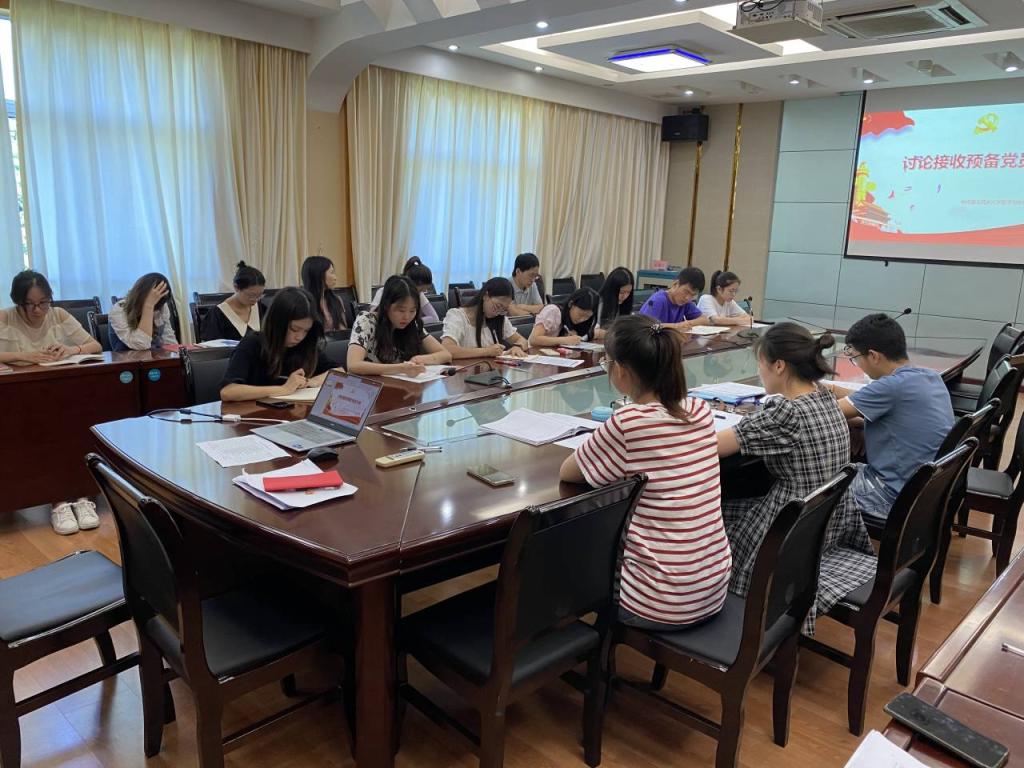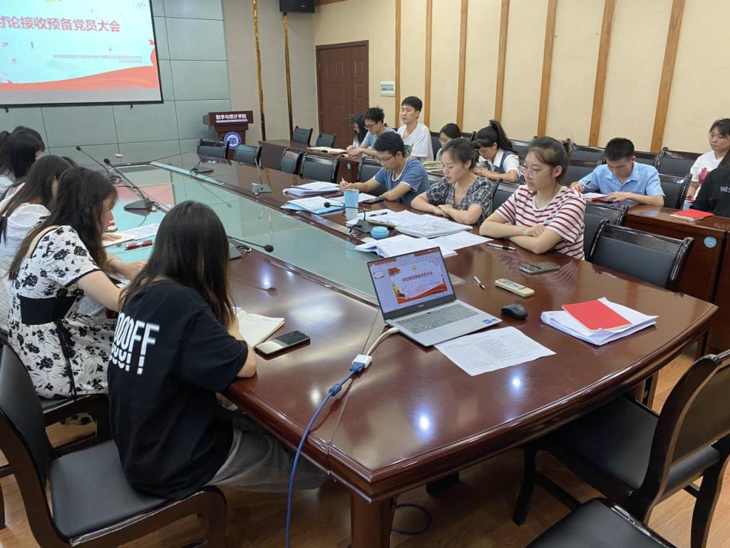 2022年6月29日14时,数学与统计学院学生党支部在四楼会议室召开支部大会,讨论确定赵薇、孙梦、姜智文等8名发展对象为中共预备党员。全体党员参加此次支部大会。会议由党支部书记黄丽娜同志主持。