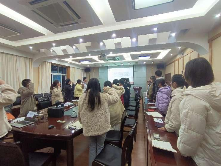 会上,支部组织委员王羽同志对缴纳党费的具体情况进行汇报,黄丽娜同志带领全体党员与预备党员重温入党誓词。支部张荣涛同志带领学习《党的二十大报告学习辅导百问》有关内容;支部张粤同志带领全体党员集中学习《二十大党章修正案学习问答》有关内容;支部黄丽娜同志传达学校2023年春季学期开学工作大会和第一次学生工作会议精神,落实开学“系列教育活动”有关工作;支部李连武同志带领学习《习近平谈治国理政》(第四卷)中有关内容。