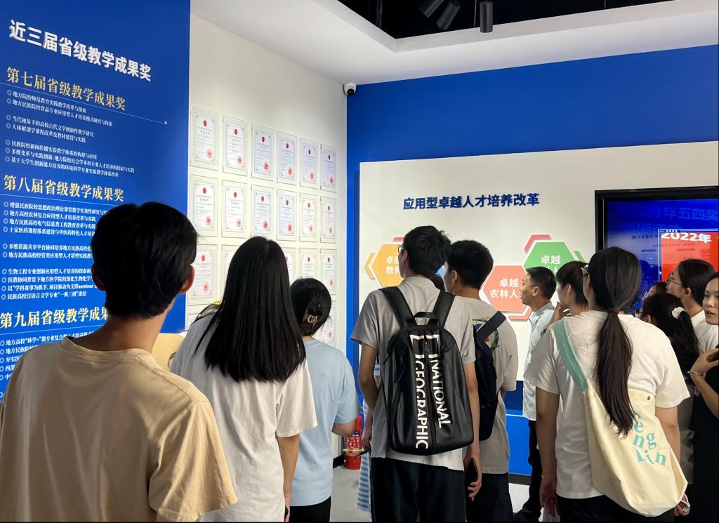 随后,学院学生第一党支部、学生第二党支部、教师党支部全体党员一同前往学校展览中心开展红色教育,在校史陈列厅、办学成果展示厅和发展规划厅,通过对学校发展历程、人才培养、科学研究与社会服务、文化传承、专题展示及发展规划等情况的详细了解,增进了奋进新征程的凝聚力。