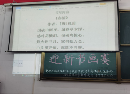 据悉,本次迎新书画大赛,旨在鼓励同学们将有限的课余时间投入到更加积极有益的兴趣爱好中,同时有助于加强学院的文化建设,延续学院的优良学风,促进文明、和谐校园的建设。(编辑 廖祥宇 苏晓璇)