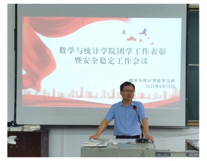 本网讯(见习记者 田宇 江杰 杨娇/文 何冰冰/摄)6月15日晚,我院在3308教室举办2021年春季学期团学工作表彰暨安全稳定工作会议。我院党总支书记赵魁轩老师、学生科科长谭迪老师出席本次会议。我院全体学生干部参加此次会议。