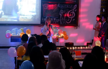 本网讯(记者 孙梦 见习记者 夏茂越 刘兴运/文 )4月17日晚,我院学生会文体部联合外国语学院学生会文体部在我院3307教室举办“耕耘‘数’艺,弦‘外’之音”校园歌手大赛总决赛。数学与统计学院学生科科长谭迪老师、外国语学院学生科田甜老师、校文体部副部长许一珂、外国语学院学生会主席于川琪、数学与统计学院副主席张琦璇受邀出席本次比赛并担任评委。