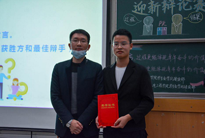 (刘聪老师为最佳辩手颁发荣誉证书)