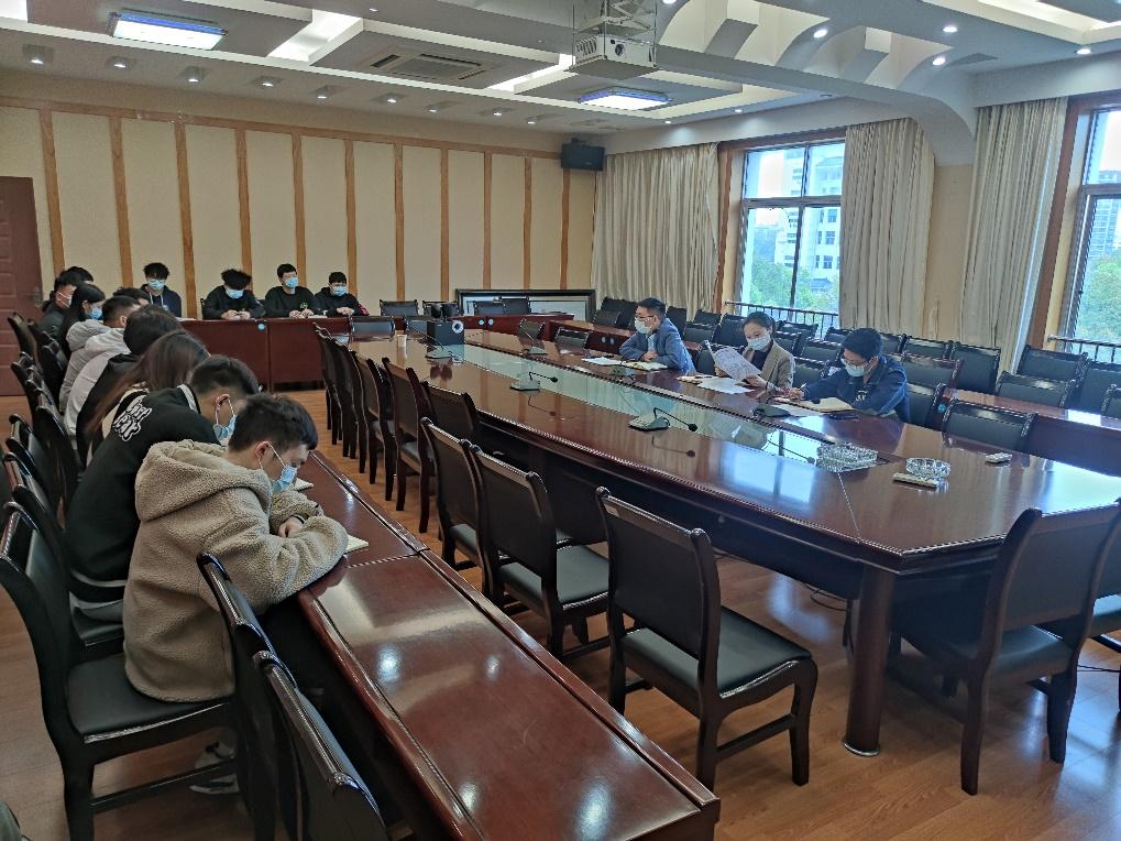 本网讯(见习记者 赵运 韩静/文 赵运/摄)4月4日中午,我院在四楼会议室举行关于对尚未解除违纪处分的学生思想政治教育座谈会,学生科黄丽娜老师、刘聪老师、廖祥宇老师出席本次会议,刘聪老师主持,我院尚未解除违纪处分的学生到场聆听。