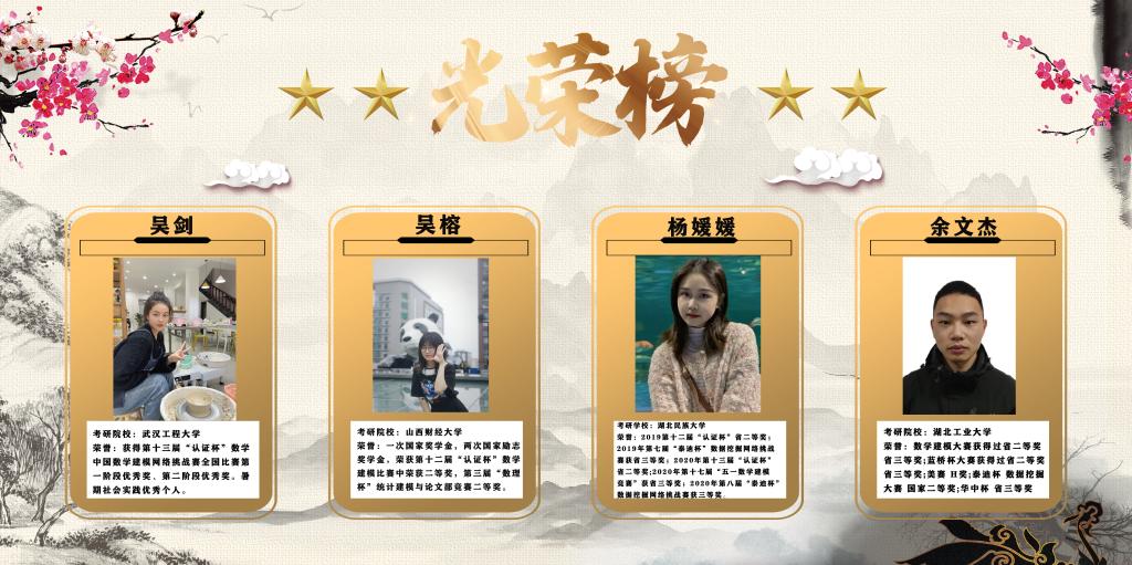 “十年寒窗无人问,一举成名天下知”,数学与统计学院2022届考研学子再创佳绩,一路走来,他们不仅为自己争得了荣光,也为我院学子树立了良好的榜样,让我们跟随他们的步伐,续写我院荣光!