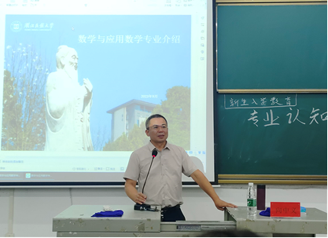 (向中义教授正在向新生介绍数学专业)