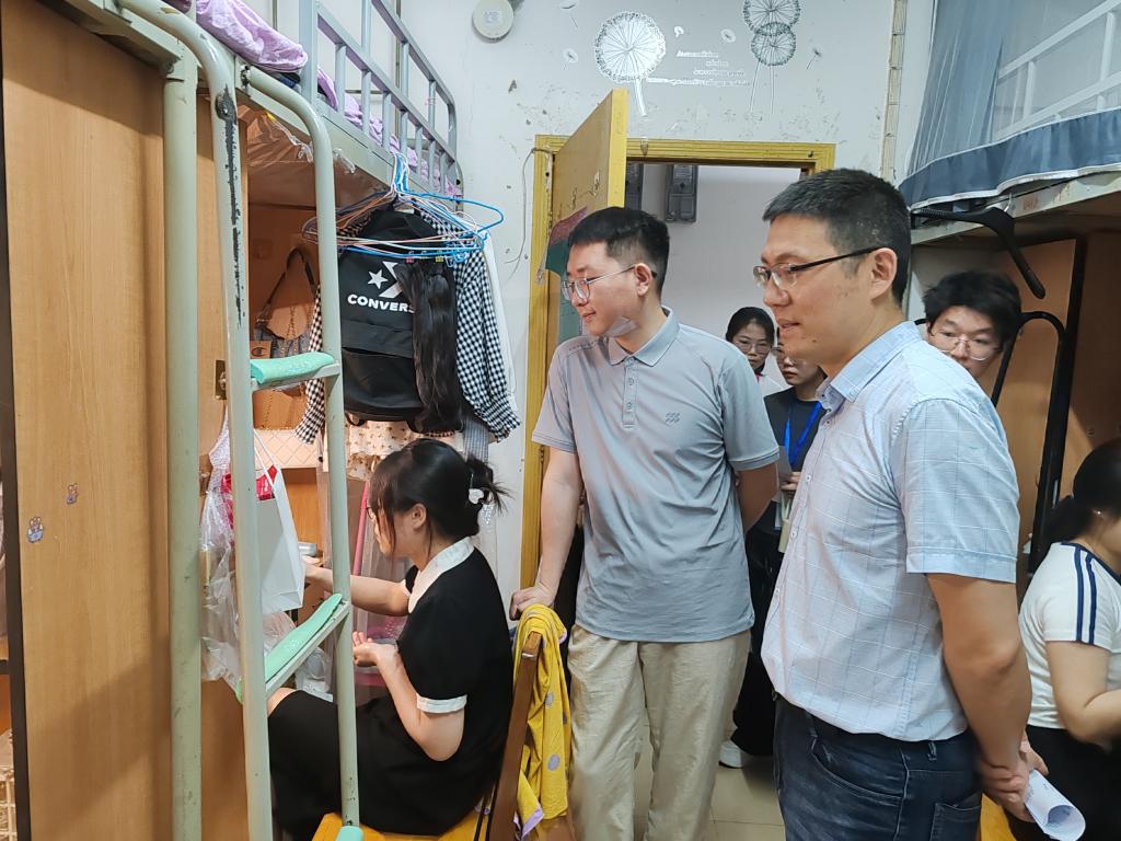 (唐利明副院长与刘聪老师带领学生党员走访寝室)