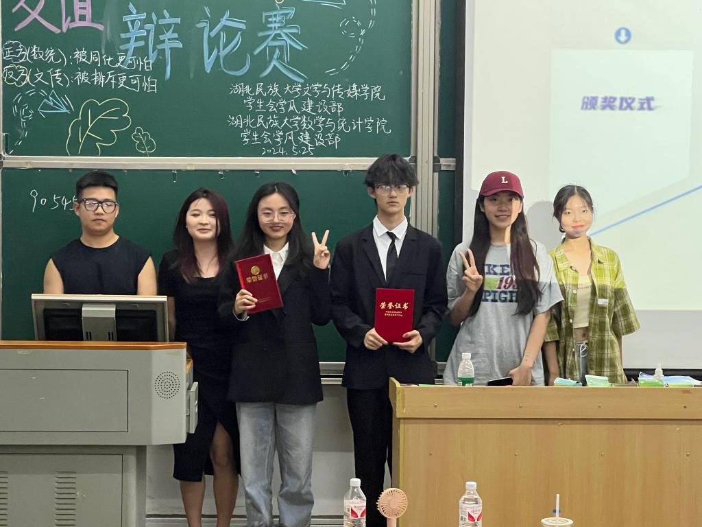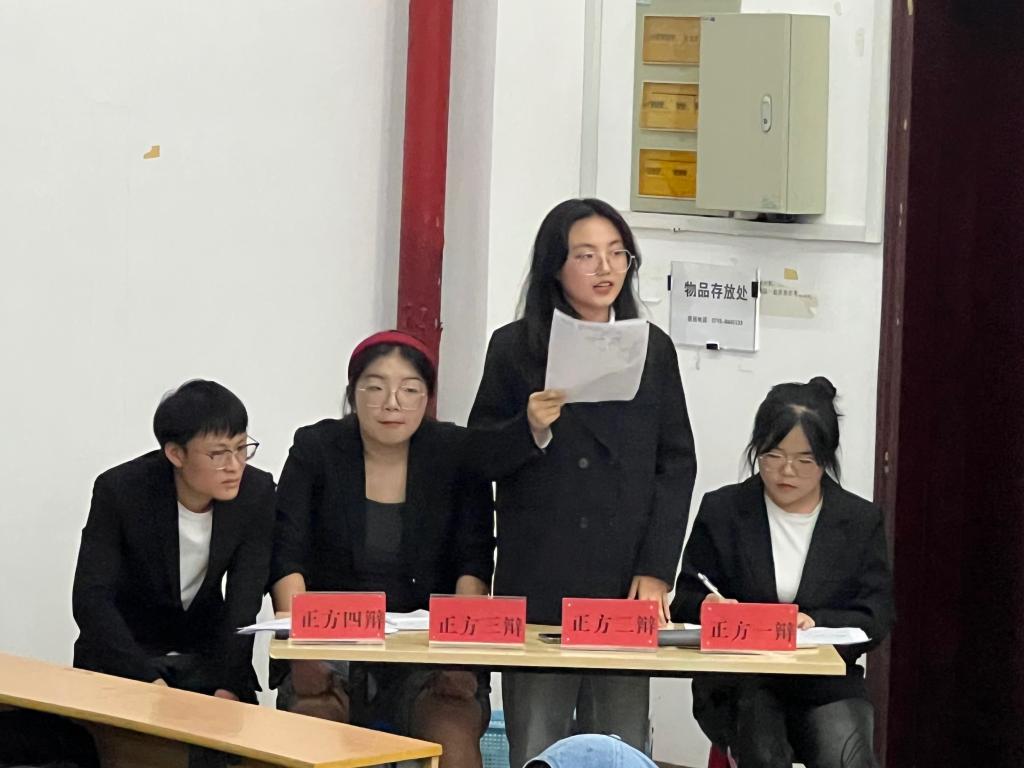 5月25日晚,学院联合文学与传媒学院于修院楼5A308教室成功举办友谊辩论赛。数学与统计学院胡鑫、邹听悦、刘家凤、李誉四位优秀辩手应邀担任本次比赛评委,文学与传媒学院李明慧同学主持活动。