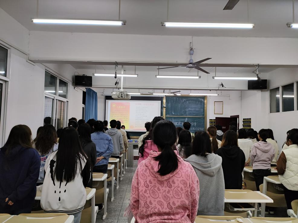 班主任引导学生思考“如何在学习生活中不断锤炼自我,实现个人价值与社会价值的有机统一”,并为同学们阐述本院优秀学子实现人生价值的实例,鼓励学生眼光长远、立足当下,既要思考个人职业生涯规划,又要要积极实践,将个人发展融入第二个百年奋斗征程中,保持闯劲、拼劲、韧劲。