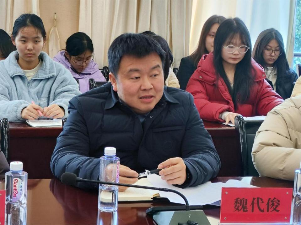 会议最后,魏代俊书记对本次会议内容进行了点评,并提出“个人有追求,团队强合作,引领出成效”的工作目标,具体表现为:全心全意为同学服务、德智体美劳全面发展;部门间做好沟通合作,形成工作上的协调统筹合力;团学干部明确自身目标,起到模范引领作用。