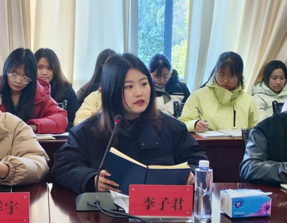 随后,李子君老师对各部门的述职情况进行了点评,她在肯定部门工作成效的同时,针对制度建设、活动创新、品牌建设等方面存在的短板提出发展建议,传达了2025年度学校团学组织工作安排,并对“一月一节”活动方案进行了详细解读。同时讲解了《数学与统计学院学生干部挂科的处理办法(征求意见稿)》,强调团学干部要充分发挥示范引领作用。
