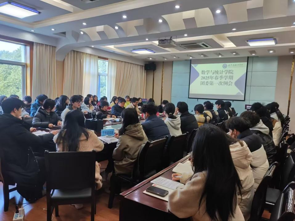 为针对新学期工作计划开展,加强学生管理,数学与统计学院于2月27日中午在四楼会议室召开2025年春季学期团学组织述职会议。党总支书记魏代俊、党总支副书记郑敏、学生科副科长廖祥宇、院团委与学生会各部门及其下属组织成员代表参加会议。学生科辅导员、团总支书记李子君主持会议。