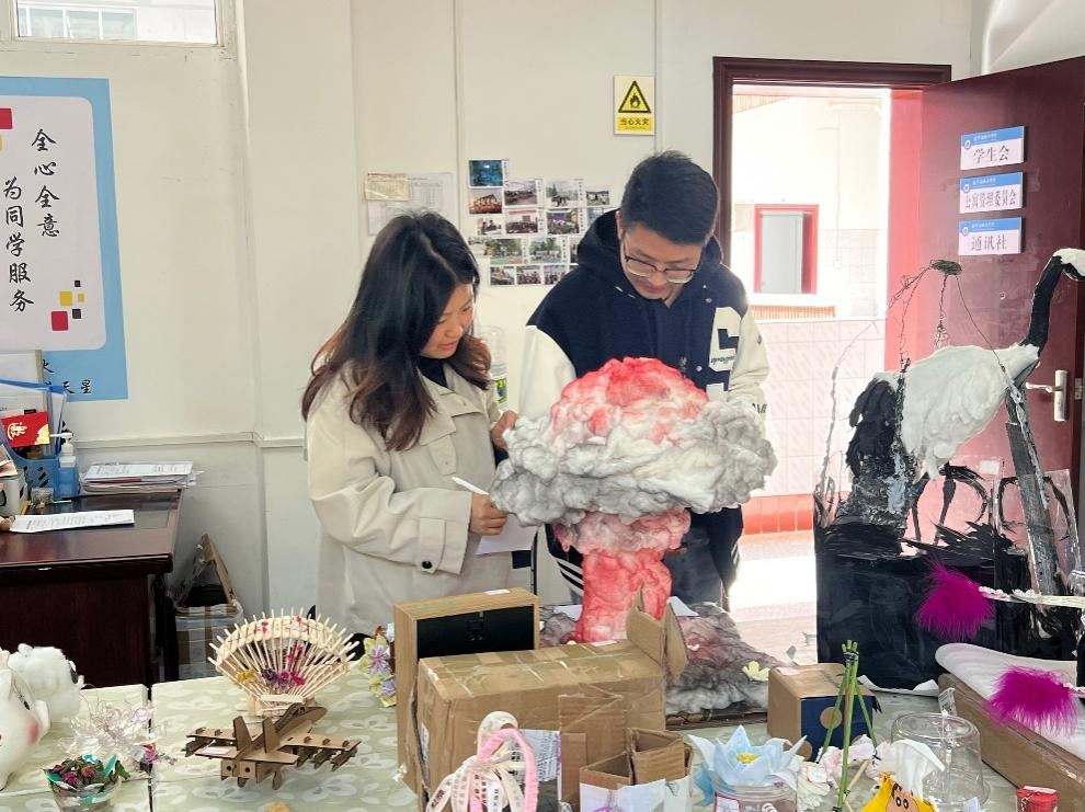 双轨评选:大众与专家的共同见证。4月1日,学院党总支副书记郑敏、学生科副科长廖祥宇、学生科辅导员李子君从创新性、实用性、环保价值等维度进行综合考评。通过“大众评审+老师评议” 双轨评选制,最终叶延燎凭借出色的作品荣获一等奖,郑家、黄小楠获得二等奖,彭淑瑾、滚丽娟和段凯琼获得三等奖,张也、陈彦伶、黄荣正、宋文娜、孔婷和苏比努尔获优胜奖。