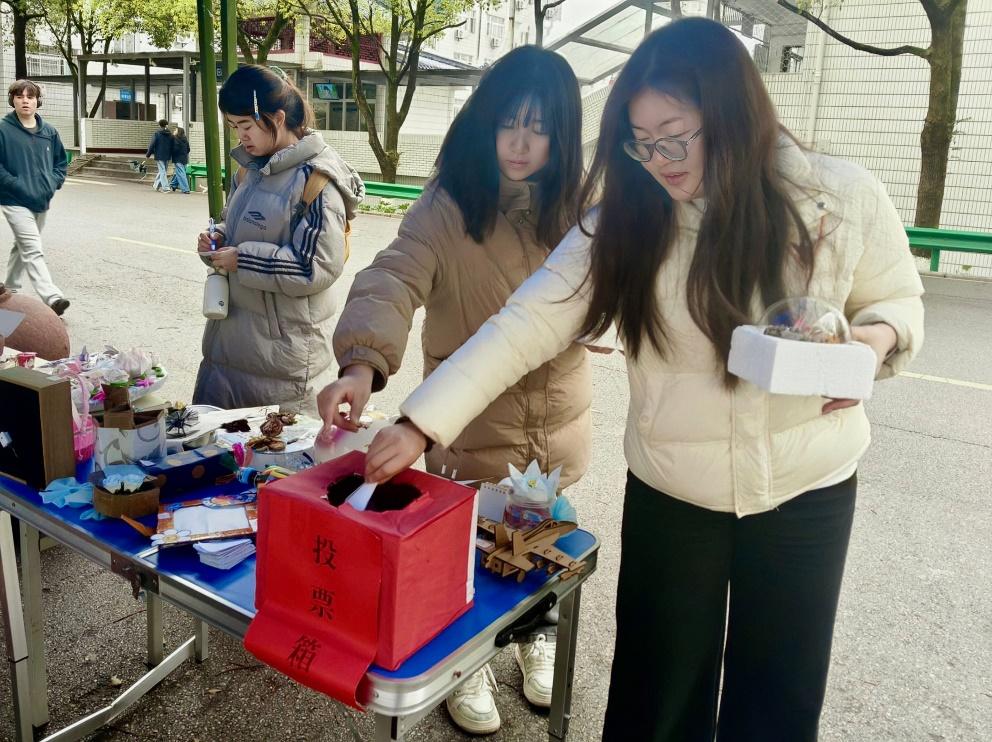 变废为宝:创意与环保的碰撞。3月24日至28日“变废为宝”作品征集活动如火如荼地展开同学们充分发挥创意,将废旧纸箱、塑料瓶、布料等材料制作为实用工艺品参赛,实现废弃物资源化利用。3月29日,作品在博学片区书香社区集中展出,吸引了大量师生和小朋友驻足观赏并参与投票评选。
