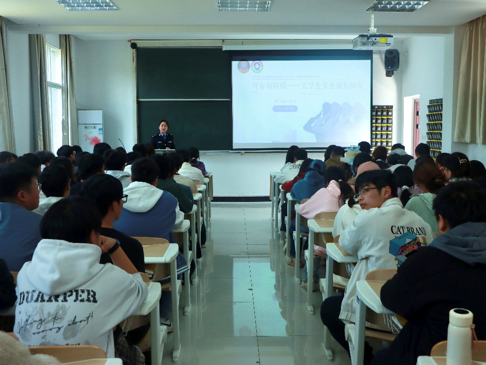 为增强学生反诈防骗能力,引导其树立积极恋爱观与健康人际交往意识,4月3日下午,学院在3405教室开展“青春双防线——大学生安全成长指南”主题讲座,特邀恩施市公安局舞阳坝派出所副所长黄茜茜进行宣讲。