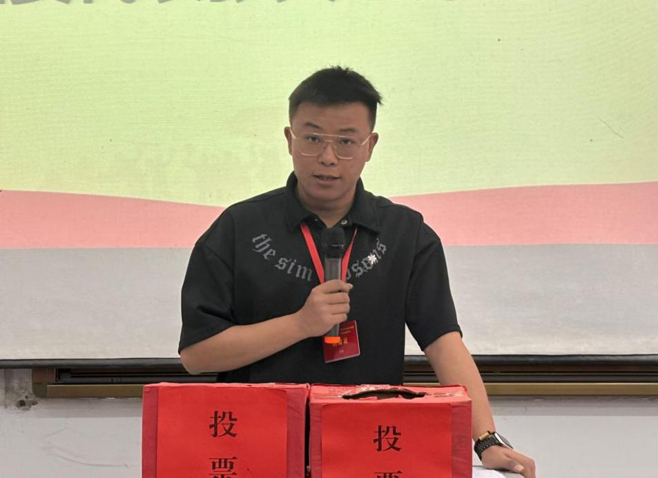 随后,校团委老师张典讲话。他对本次学生代表大会的展开表示祝贺,给予优秀学生代表赞赏,同时表达了对数学与统计学院下一届学生会的美好期盼。他希望院学生会组织能够继续将专业特色与第二课堂活动相结合,为学生提供更好的互动平台,做好思想引领,锚定青春航向。