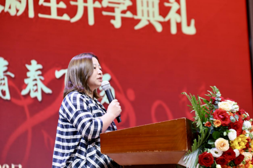 中共党员、优秀学生干部代表唐咏琪,创新创业项目代表赵崇敏,暑期社会实践项目代表张鑫冉,校园文化活动代表张楚楚依次发言。她们从自身经历出发,鼓励新生勇于展示和突破自我,坚持自己所热爱的梦想。新生代表曹思远表示,将尊敬师长、虚心好学、以诚待人、以信交友,用汗水和智慧书写大学生活。