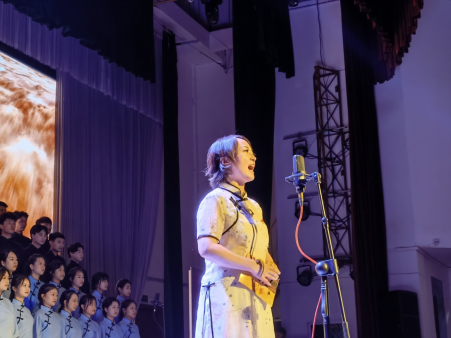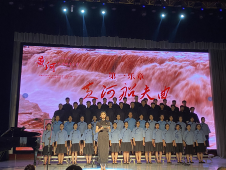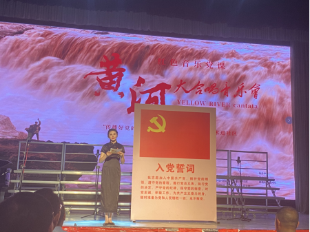 本场音乐会结合讲述、朗诵、合唱形式,全体教职工党员、学生党员和合唱团学生参与演绎。《黄河大合唱》音乐会在主讲人——音乐舞蹈学院党总支书记张蕊声情并茂的讲述中拉开序幕。第一乐章《黄河船夫曲》展现出了“黄河的船夫在暴风雨中搏战,经过千辛万苦终于到达彼岸”的情景;澎湃激昂的男声独唱《黄河颂》表达了中华儿女对黄河的无限热爱和热情讴歌;配乐诗朗诵《黄河之水天上来》、混声合唱《黄水谣》则表现出中国人民面对侵略者的坚强不屈和英勇无畏的伟大精神;《河边对口曲》讲述了广大流亡民众颠沛流离、背井离乡的悲惨遭遇,体现出了家国存亡的内忧外患;女声独唱《黄河怨》悲惨缠绵、低沉凄切、如泣如诉,唱出了一个被敌人压迫的绝望妇女内心深处痛苦的哀怨;混声合唱《保卫黄河》《怒吼吧,黄河》气势恢宏、磅礴大气,表现出了中国人民保家卫国、抗战必胜的决心和中华民族团结一致、所向披靡的伟大精神力量。最后,由桂花园社区党支部书记、主任王玉娇带领现场全体党员重温入党誓词,音乐会至此圆满落下帷幕。