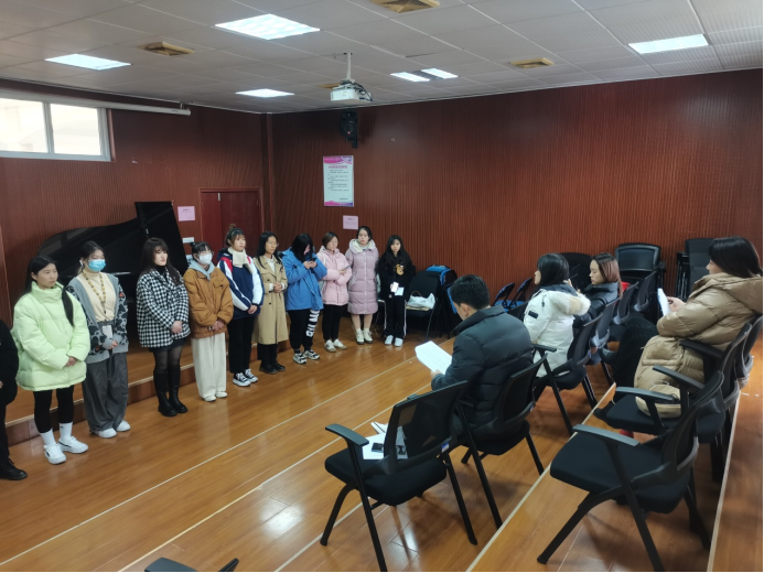 为了响应中办国办《关于全面加强和改进新时代学校美育工作的意见》(2020)文件精神,推动实施艺术教育专业大学生支教计划,让广大农村、老少边穷地区的孩子也享受优质美育资源。2021年12月12日,音乐舞蹈学院“美育援教”课题组在合唱教室进行了2022年“美育援教”志愿者招募面试工作。