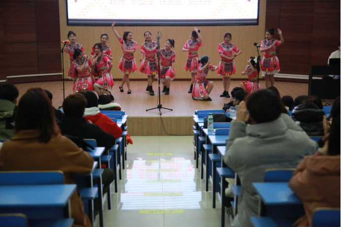 2021年12月16日,音乐舞蹈学院在图书馆模拟法庭大厅,举办了《恩施土家族民歌》课程汇报展演。该课程是由音乐舞蹈学院副教授刘红老师负责的省级线上一流本科课程。19级音乐学专业学生在课程汇报展演中,演唱了恩施地区多种体裁形式的民歌,如建始喜花鼓、恩施灯歌、鹤峰穿号子、宣恩薅草锣鼓、巴东撒尔嗬等,生动精彩的表演让在场师生直观的感受到土家族民歌的魅力和特色,激发了学生对民族音乐文化的热爱和学习兴趣,培养学生对文化遗产传承和保护的意识。