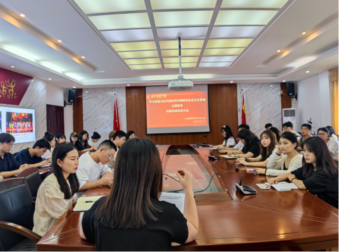 6月11日下午,音乐舞蹈学院学生党支部在会议室召开学习贯彻习近平新时代中国特色社会主义思想主题教育之“你安心备考·我为你护航”考试周教室卫生志愿服务特色实践活动启动大会,支部全体师生党员、30余名入党积极分子参会。