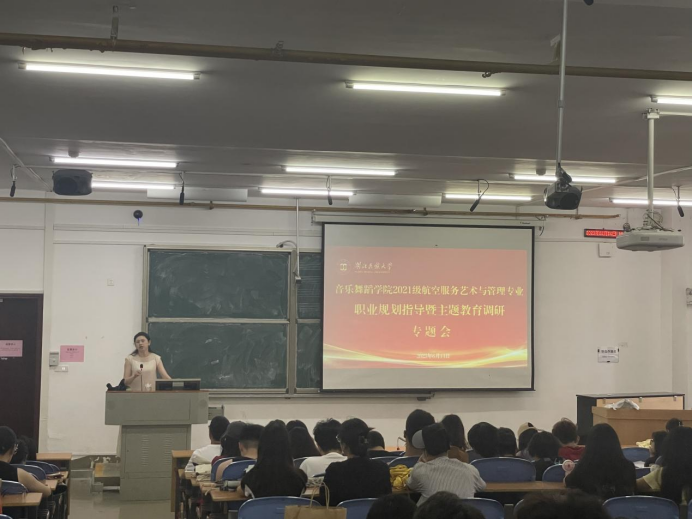 【进专业—扎实推进专业教育入脑入心】2023年6月,学院党总支书记张蕊对2021级航空服务艺术与管理专业全体学生开展职业规划指导暨主题教育调研专题会,全体135名航艺学子参会并认真学习。张蕊同志从专业申报初心出发,讲述专业建设的出发点及期望,进而以个人经历为切入点,指出大学阶段是人生的关键期,拥有无限可能,广大学子应该抓住成长成才的机会,激发个人拼搏精神,转变学习态度与方法,尽早制定个人职业发展规划,早日飞上蓝天。同时她对全体航艺学子提出希望与要求,力争让每一位同学在专业学习上学有所获。