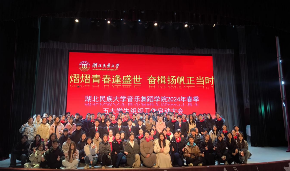 2024年3月4日,以“熠熠青春逢盛世•奋楫扬帆正当时”为主题的2024年春季学期学生组织工作启动大会,在音乐舞蹈学院演播厅顺利召开。音乐舞蹈学院党总支副书记邓丽,学生科杨倩老师、张岩老师,及音乐舞蹈学院学生组织全体成员参会。