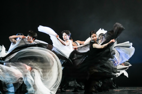 本次展演共分生、熙、欣、繁四幕。“生”篇,舞者着洁白的舞衣,用丰富的肢体语言将所思所感流露于动作中,尽情展现生命之美,拉开展演序幕;“熙”篇,土家族组合展示土家族传统艺术“打莲湘”,舞者舞步轻快,边跳跃边抖动莲湘,用其打击在肩、手臂、腿等部位,发出清脆悦耳的铃响声,充分调动现场氛围。蒙古族组合在富有节奏感的鼓点声中,舞者抖动胸脯、扭动双臂,动作简洁明快,用力量感十足的肢体语言展现民族豪迈气概和刚劲有力之美,气氛和谐而热烈。现代舞组合,舞者红裙配西装,热情昂扬富有力量,舞蹈自信、开朗、具有表现力,用铿锵有力的步伐踏出现代青年人的活力与朝气,用新颖的舞台设计为观众带来视觉盛宴;“欣”篇,《冰凌花》采用传统东北秧歌元素,描绘了破冰雪而出的冰凌花奋力绽放的情景。大量扇技的展现配合唢呐吹奏,让作品的情感起伏跌宕,用冰凌花的坚韧展现黑土地上人们顽强不屈的性格和无所畏惧的精神。《阳光下的麦盖提》以维吾尔族的“刀郎”为主要动作语汇,构建出“刀郎”与山东“鼓子秧歌”对舞的情景。舞者身着维吾尔族传统服饰,动作粗犷大方、沉稳矫健,在刀郎舞节奏中不断变换空间形态,展现出刀郎舞这一优秀传统艺术形式的独特魅力。《妹娃过河》以女子群舞的形式将利川民歌《龙船调》中“妹娃要过河”这一情节展开呈现,妹娃搭起过河的桥,跨过河流水,跨向承载理想的远方,借助水的多重象征隐喻妹娃过河是追逐理想的远行,是自我价值的追寻,更是生命信仰的归途;“繁”篇,从一二三开始到三二一结束,从五湖四海相聚到各奔人生东西,全体演职人员一次次谢幕道别,一次次高歌“我的未来式由我做主”,新的人生之旅将从此刻扬帆起航(审核:胡自爱)。