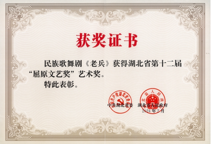 永利官网原创民族歌舞剧《老兵》喜获湖北省第十二届“屈原文艺奖”艺术奖