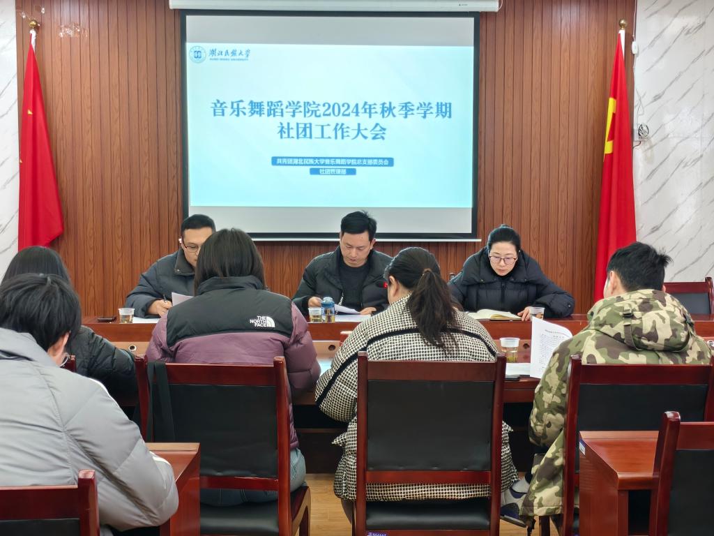2024年12月20日,3044am永利集团3044noc音乐舞蹈学院社团工作大会于学院四楼会议室召开。出席本次会议的有音乐舞蹈学院院长谷秋阳、党总支副书记邓丽、团总支书记张翰庭,社团指导教师朱蓉、谷穗、龙雅婷、张然、王多,以及团总支社团管理部成员,七大社团(合唱团、民乐团、戏曲团、舞蹈团、红徽章协会、茶文化协会、鸽笼俱乐部 )负责人。