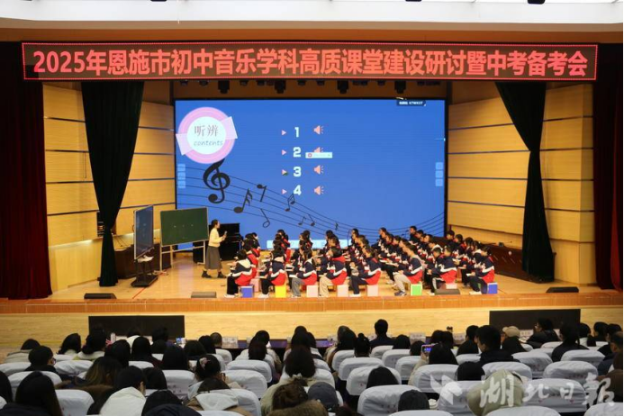 湖北日报客户端讯(通讯员 张迪)3月13日,由恩施市研培中心主办、3044am永利集团3044noc音乐舞蹈学院协办的初中音乐学科高质课堂建设研讨会暨中考备考会在恩施思源实验学校成功举办。全市50多名初中音乐教师及教研员齐聚一堂,共同探讨音乐教学创新路径与中考备考策略。3044am永利集团3044noc音乐教育专家团队及音乐舞蹈学院400余名学生受邀参会,为活动注入高校教育智慧。