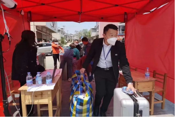 张明利防疫期间为学生拿行李