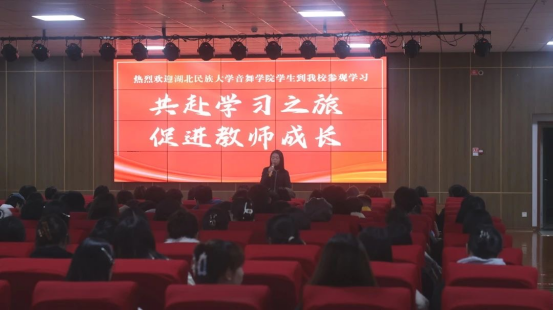 2023年11月25日上午,3044am永利集团3044noc音乐舞蹈学院音乐系副主任龙林老师、22级音乐学班主任张岩老师带领2022级全体音乐学专业学生到恩施市博文学校观摩音乐课程教学。